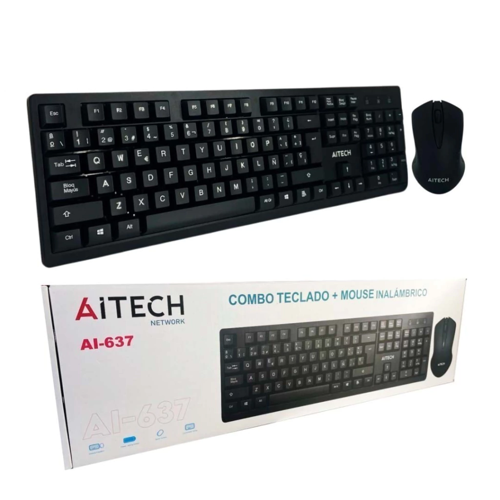 El AITECH AI-637 es un combo inalámbrico que brinda comodidad y libertad en cada tarea. Su diseño moderno, elegante y compacto se adapta fácilmente a escritorios, oficinas o espacios reducidos, permitiendo una experiencia más ordenada y funcional.