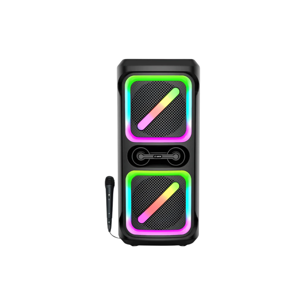 Parlante Aitech Moonstone 8.5" x 2 Bluetooth 24W con Micrófono y Luz LED RGB Potencia, diseño y diversión se combinan en el Parlante Aitech Moonstone, con doble parlante de 8.5 pulgadas y conexión Bluetooth para reproducir tu música favorita sin cables. Ideal para fiestas, reuniones o eventos, ofrece un sonido nítido y un espectáculo de luces LED RGB que acompañan el ritmo.